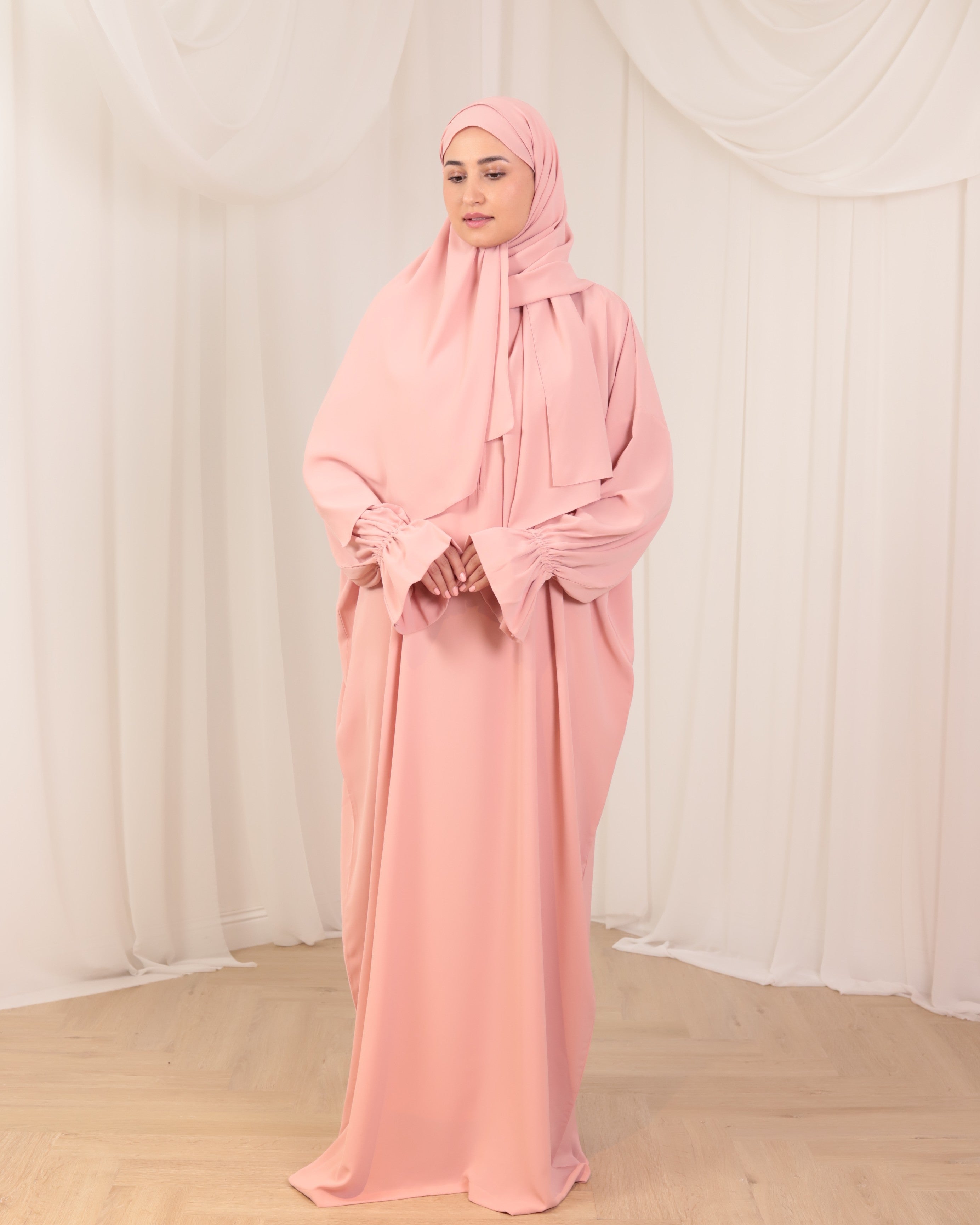 المواد: ثوب الصلاة مصنوع من قماش الكريب.