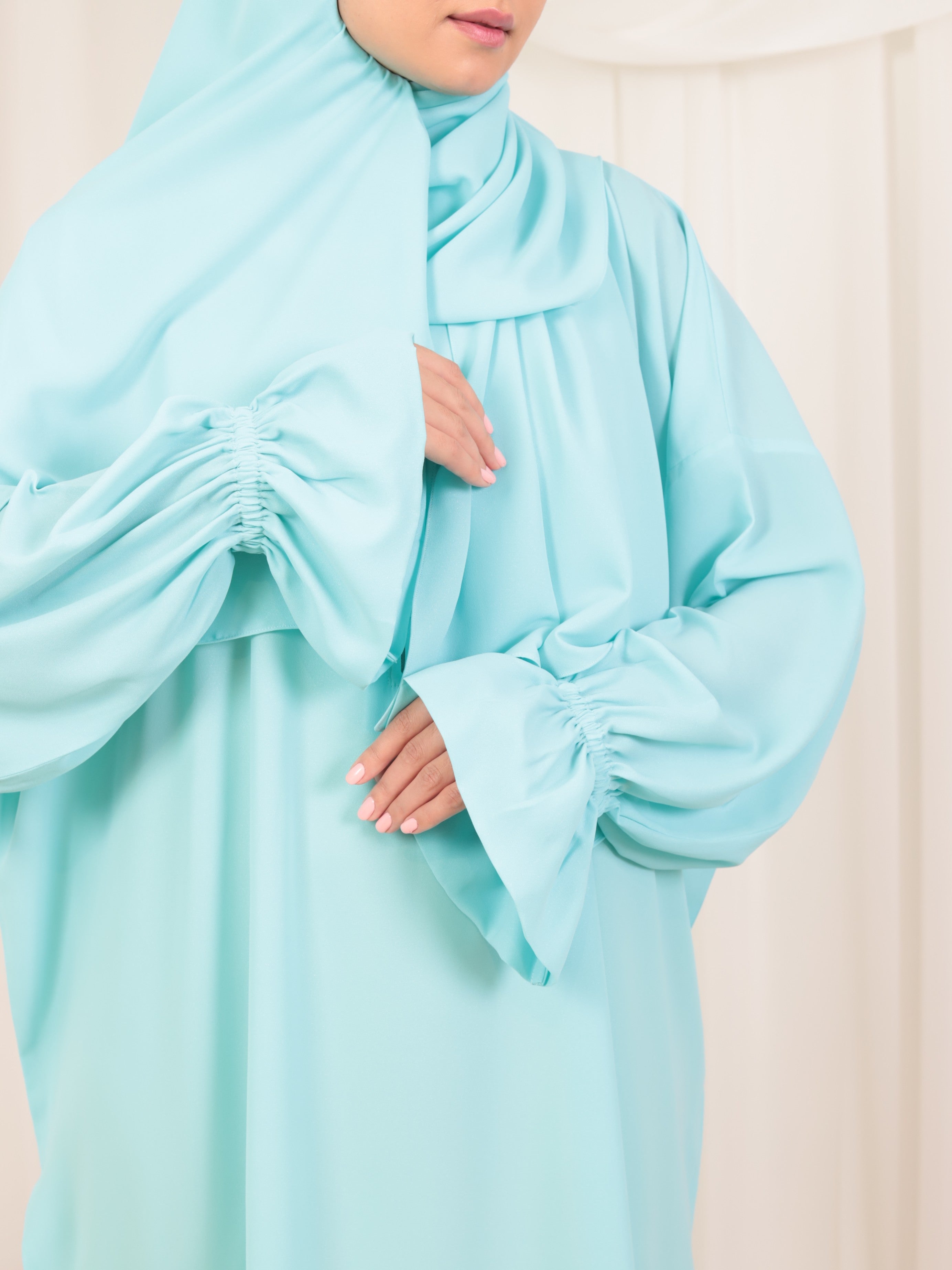 تصميم سهل الارتداء: قطعة واحدة من قماش الصلاة بسحاب أمامي و الشيلة المتصلة يجعلها سهلة الارتداء وتغطي من الرأس إلى اسفل القدمين باستثناء الوجه واليدين.