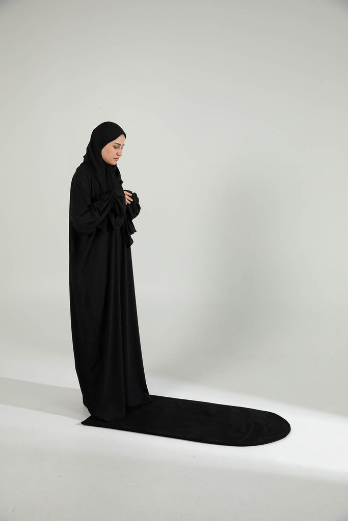 تصميم سهل الارتداء: قطعة واحدة من قماش الصلاة بسحاب أمامي و الشيلة المتصلة يجعلها سهلة الارتداء وتغطي من الرأس إلى اسفل القدمين باستثناء الوجه واليدين.
