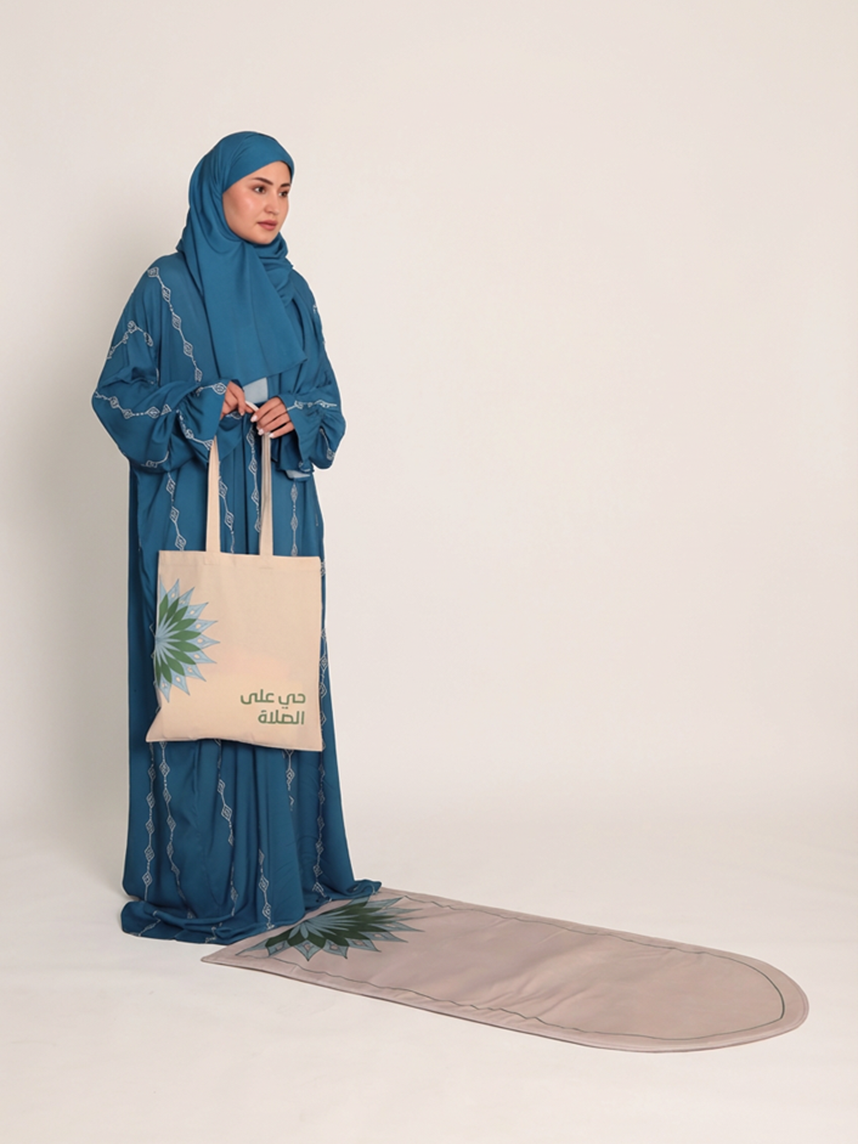 1 prayer wear, 1 prayer mat, 1 tote bag.