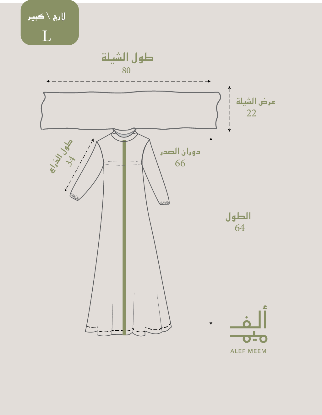 Stand upright and measure from the midpoint of your shoulder straight down over fullest part of your body. Measure to the floor inches. Add 3-5 inches for more coverage while praying. Choose the length accordingly.