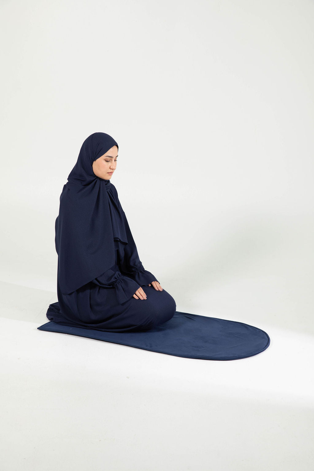 Prayer Set - OUNS Navy Blue Prayer Wear + Navy Blue Prayer Mat