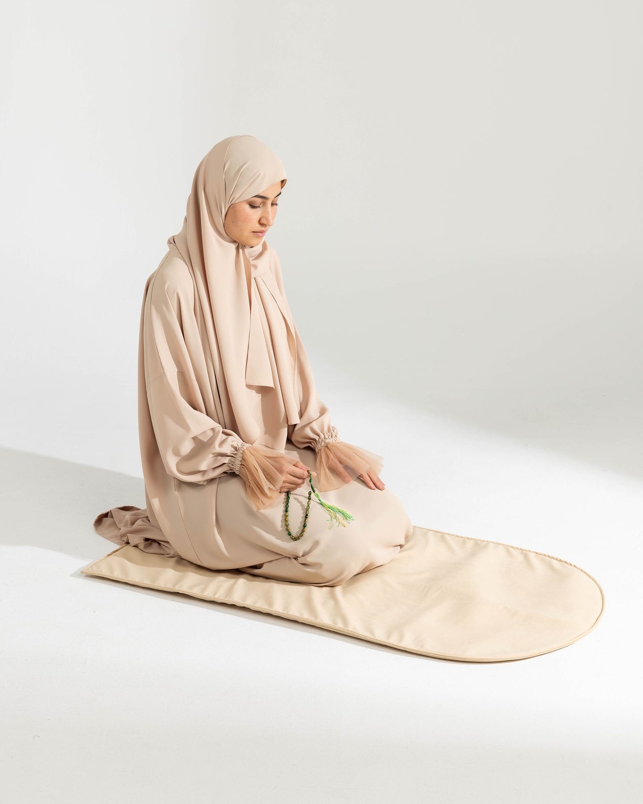 Prayer Set - Zeena Beige Prayer Wear + Beige Prayer Mat